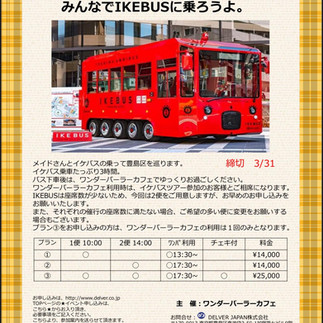 池袋Wonder Parlour Cafeのメイドとイケバスに乗って豊島区を巡ります。バスを楽しんだ後はそのままお店に向かってティーフリーを楽しんでいただきます。